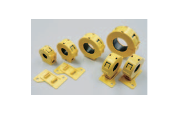 A split ferrite core is easily fitted to a cable fixed in place. The split core is designed to eliminate the joint gap. As shown in Fig. 3, the characteristics of the split ferrite core are almost the same as those of the non-split (standard) ferrite core. However, if dust or foreign matter should get into the joint and produce a gap, the impedance would considerably decline at low frequencies as indicated by the curve representing the gapped ferrite core. Therefore, when fitting the split core, care should be taken not to allow dust to get into the joint.