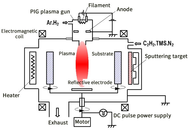 - Using an internally developed PIG plasma source, this system can form smooth DLC film at high speed.