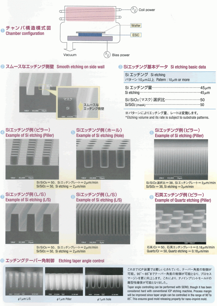 - It features excellent etching angle controllability that lends itself well to fabricating nano-imprint molds.