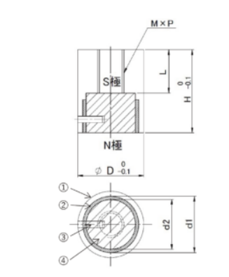 | CE0195-A01A | 10×15 | (8.1) | 5×0.8 | 5 | 300 | ![]() ①SS400 (black dye) ②Brass (C3604 cadmium-free) ③Brass (C2700) ④Alnico magnet |