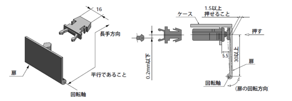| Removal force after push catch is attached | 4 kg (39.2 N) or more (*When the mounting material is ABS resin) |
