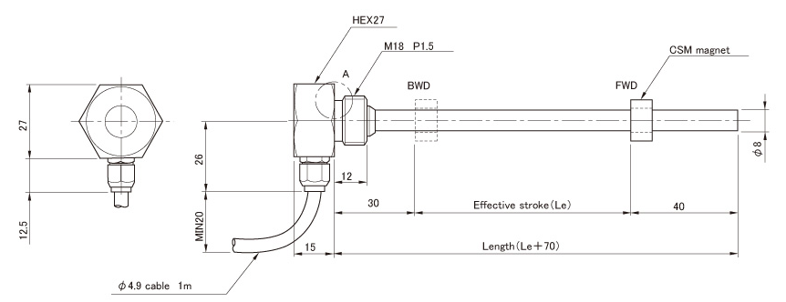 CS – Effective stroke (mm)15, 30, 50, 75, 100, 300, 500, 700, 1000 – Cable length (m), Std 1m, Max 10m