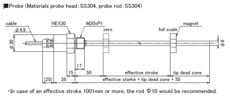 Model GY Series are “Displacement Transducers” employing magnetostrictive phenomena, especially the Wiedemann effect. An ultra-sonic wave is generated by a moving magnet operating near a magnetostrictive wave guide on which the sonic wave propagates up to the head of the transducer.