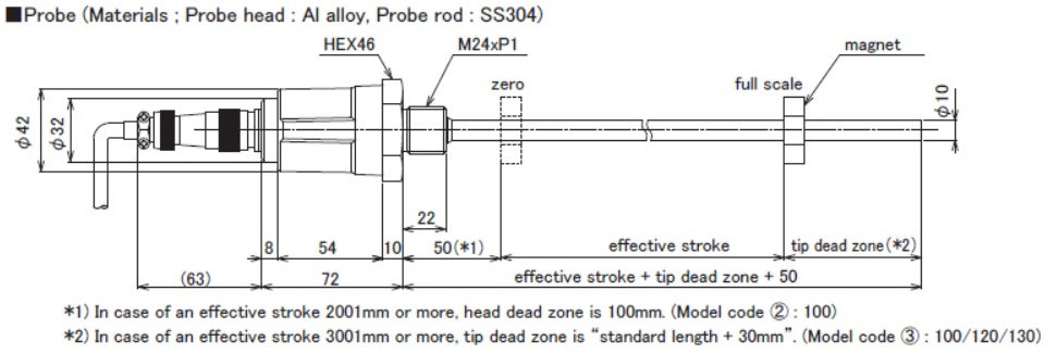 - The above mentioned accuracy applies to sensors with an effective stroke of 300mm or more.