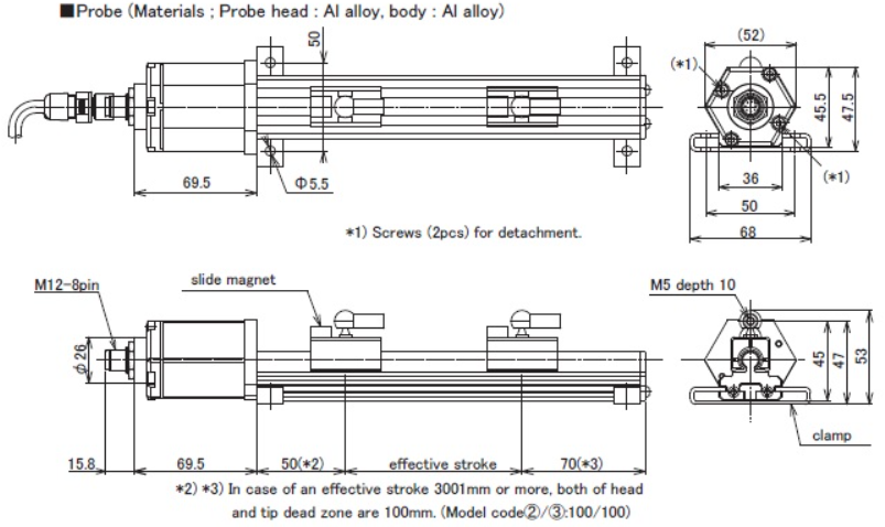 ・The above mentioned accuracy applies to sensors with an effective stroke of 300mm or more.