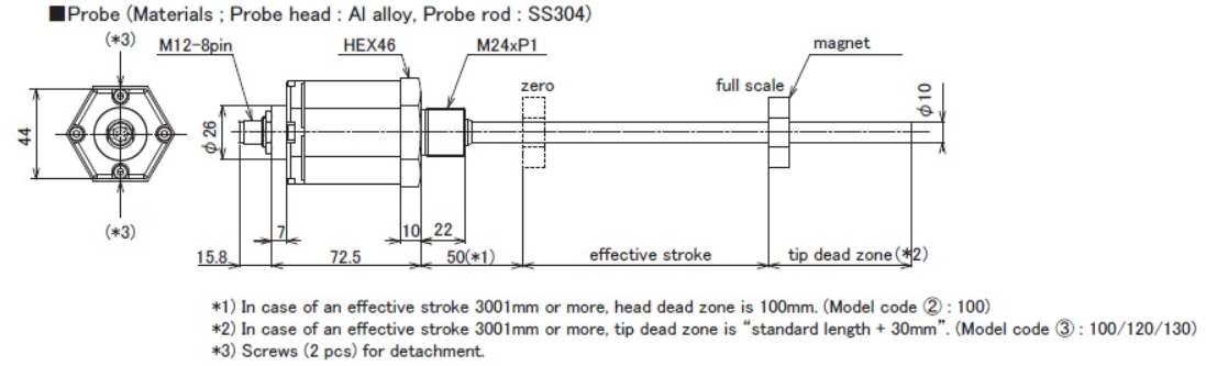 • The above mentioned accuracy applies to sensors with an effective stroke of 300mm or more.