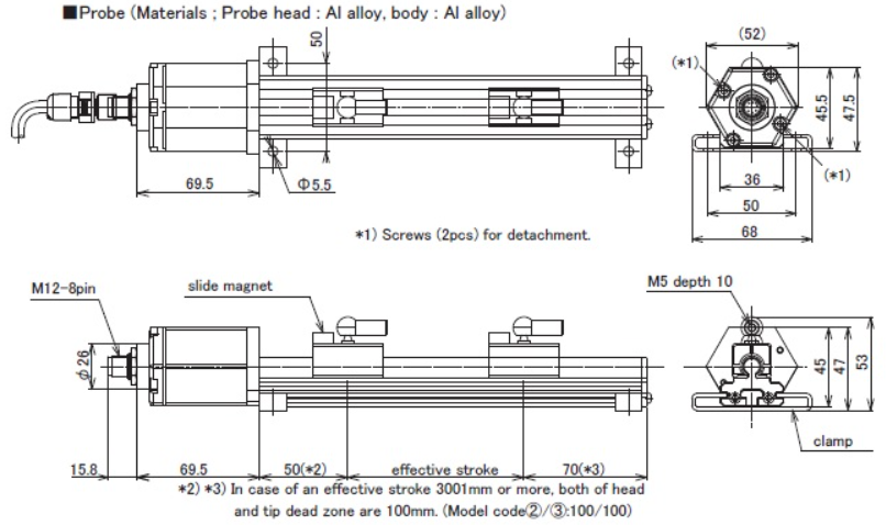 ・The above mentioned accuracy applies to sensors with an effective stroke of 300mm or more.