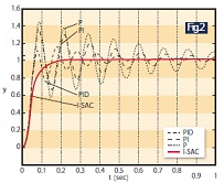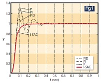 Controlled performance Fig.1 shows an example of a step response of PID and I-SAC servo controller in case of setting target value to one in a typical cylinder positioning control system. While any PID control has an overshoot and reaching the target in an oscillating mode, I-SAC is realizing a smooth and fast response without any oscillations due to its proprietary high-gain feedback. As to the steady-state error, I-SAC can make it totally zero because of its integration compensation feature.