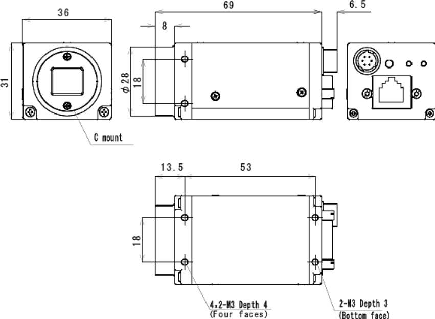 | Video Output | Progressive scanning: 31 frame/sec Digital output: 8/10/12bit switchable GigE Vision compliant | |