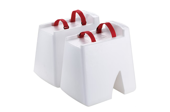 They have a large footprint, making them stable. They are made of foam, making them very light, reducing strain on your legs and back.