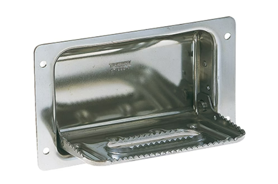 ● When the step is stored, it is held down by a spring so it will not flip over due to vibrations, etc.