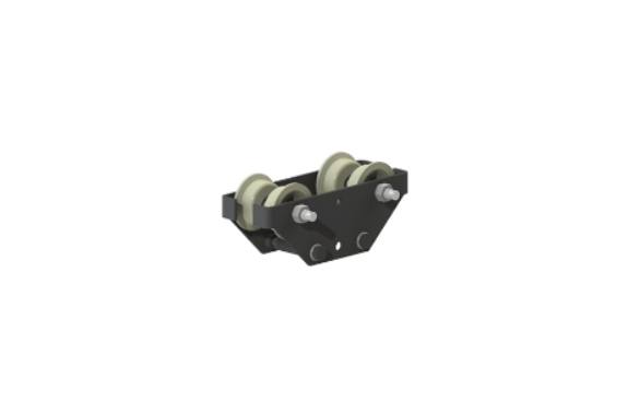 The RTA2013 Load Trolley for W-beams transmits the load along the horizontal axis and suspends the Knight pneumatic balancer using the central mounting hole.
