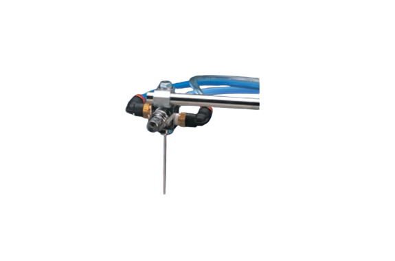- A spray gun with a new mechanism that allows spraying from the needle tip.