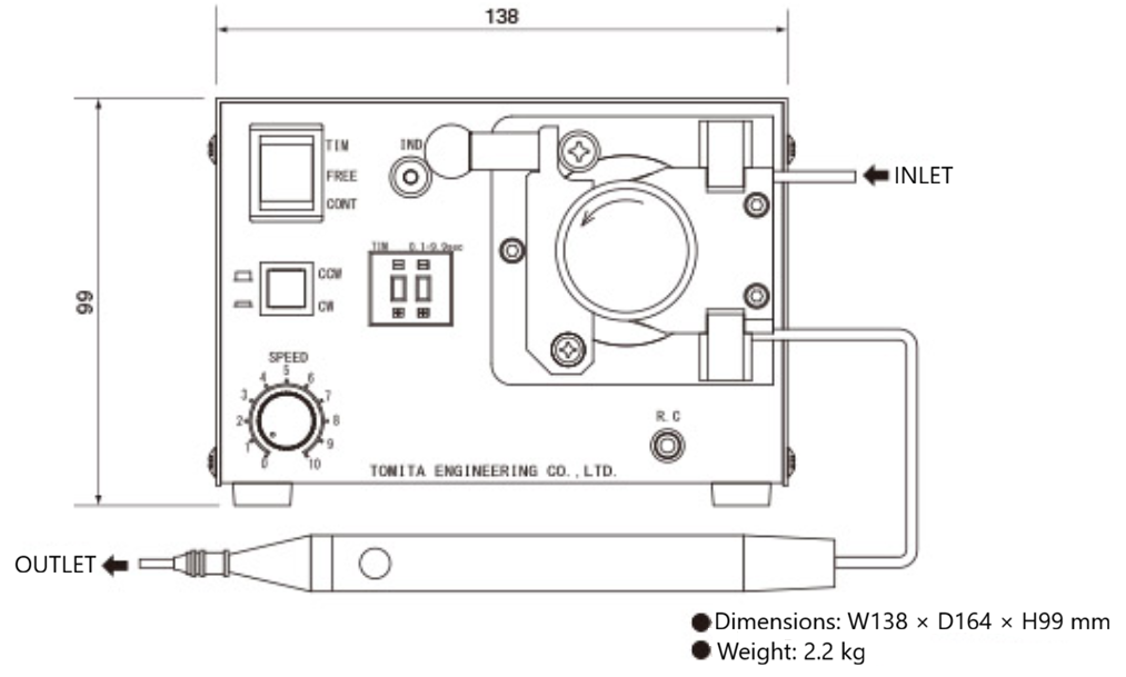 | Silicone tube: 0.3cc to 14cc/min | |