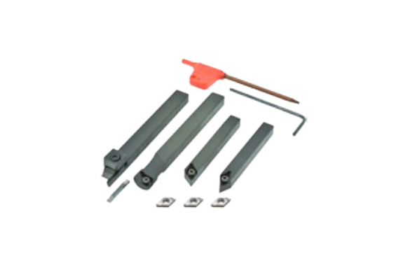 This replaceable-tip turning cutting tool is specially designed for small lathes, featuring a cutting edge with excellent sharpness and cutting edge strength. It’s a versatile, user-friendly tool for non-ferrous metals. This cutting tool series features a lineup of inserts with a large rake angle and sharp edges, which are precisely ground and perfect for cutting aluminum, copper, and brass. This value set of four includes four types: an 8mm square right-hand single-edged/straight blade and an 8x10mm parting/boring blade, each with a carbide insert for aluminum, copper, and brass.