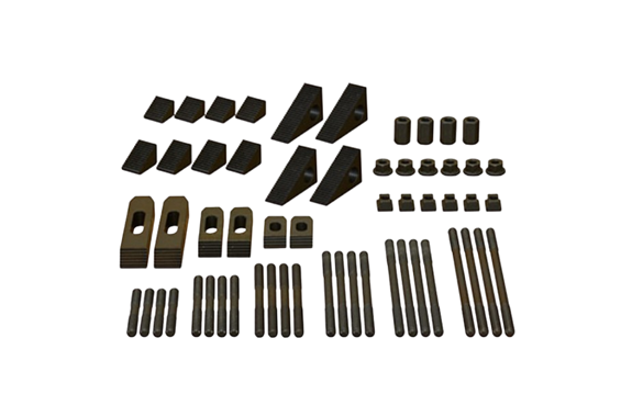 This device securely fastens materials to the milling table, and it delivers stable, accurate support for a wide range of machining operations. It includes a clamp shoe, step block, stud bolt, flange nut, and coupling nut, which work together to create a strong and adjustable clamping system. Because workpieces vary in size and shape, you can select the appropriate combination of components to achieve optimal positioning and holding force. Moreover, the coupling nuts connect stud bolts when additional length is required, thereby increasing height flexibility. When machining taller materials, you can join stud bolts to extend the clamping range and maintain secure fixation. In addition, you can place scrap wood or similar support beneath the step block to fine-tune height adjustment and ensure proper alignment. As a result, this versatile clamping solution improves stability, enhances machining accuracy, and supports efficient workflow across diverse milling applications.