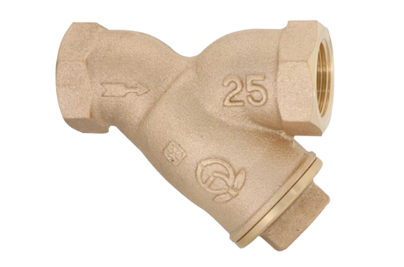 - This is a screw-in Y-shaped strainer made of cast iron and bronze.