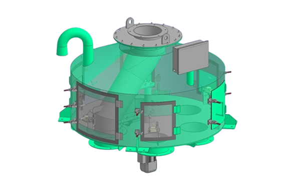 - Structure- The internal chute rotates and discharges into each chute.