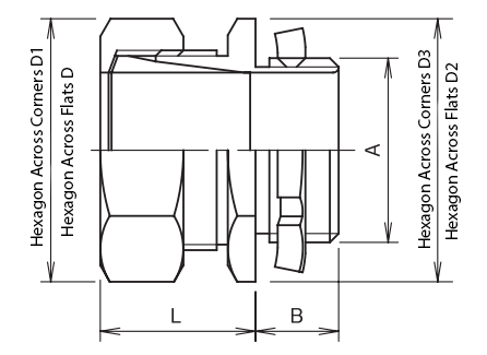 Accommodated Cable Outer DiaArmor Screw ABTAcross Flats DAcross Corners D1Across Flats D2Across Corners D3Ring Length LCap ColorMass (g)Qty/Box