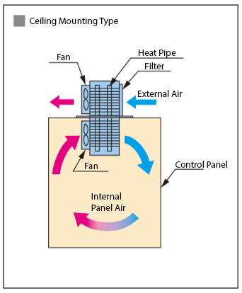 The ultimate in efficiency, this heat exchanger utilizes heat pipes. We offer a lineup including side-mounting types and ceiling-mounting types.