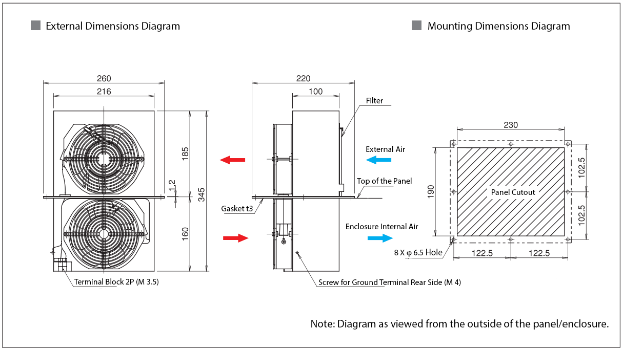 Note 1: The rated capacity is based on Technical Document No. 004 of the Industrial Association of Thermal Equipment for Control Panels.