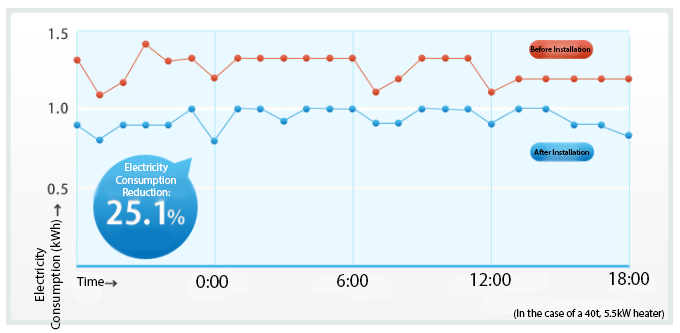 - Electricity Cost: Reduces electricity consumption of the cylinder’s heater section by approximately 20-50% (based on our company’s results).