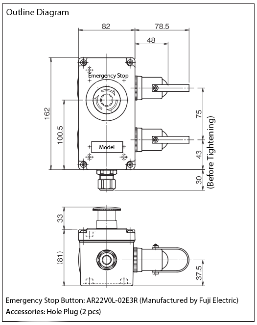 Emergency Stop Button with Side Type: The product is the L-type specification at the time of shipment. (The photo is the L-type) Changes to the R-type must be carried out by the customer.