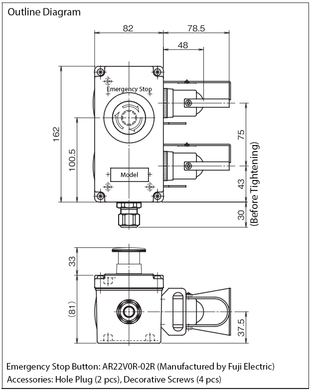 Emergency Stop Button with Side Type: The product is the L-type specification at the time of shipment. (The photo is the L-type) Changes to the R-type must be carried out by the customer.