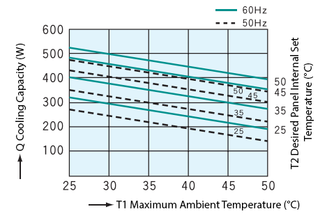 Note 1: Rated value at: Control Panel internal dry bulb temp 35°C, wet bulb temp 24°C, and Control Panel external dry bulb temp 35°C. Based on Technical Document No. 007 of the Industrial Association of Thermal Equipment for Control Panels.