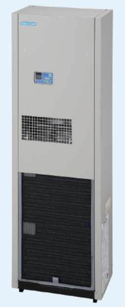 This unit is a cooling device specifically designed for sealed control panels, employing a refrigeration cycle that incorporates a compressor. The internal circulation fan draws the warm air from inside the control panel into the evaporator (cooler) within the unit, and returns it to the control panel as cool air. This process maintains a low temperature inside the control panel, even in locations with high ambient temperatures, without compromising the sealed state, thereby protecting the internal equipment and electronic devices from heat damage.