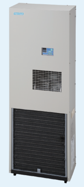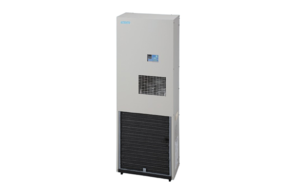 This unit is a cooling device specifically designed for sealed control panels, employing a refrigeration cycle that incorporates a compressor. The internal circulation fan draws the warm air from inside the control panel into the evaporator (cooler) within the unit, and returns it to the control panel as cool air. This process maintains a low temperature inside the control panel, even in locations with high ambient temperatures, without compromising the sealed state, thereby protecting the internal equipment and electronic devices from heat damage.