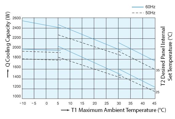 Note 1: Rated value at: Control Panel internal dry bulb temp 35°C, wet bulb temp 19.5°C, and Control Panel external dry bulb temp 35°C. Cooling capacity is based on Technical Document No. 007 of the Industrial Association of Thermal Equipment for Control Panels.