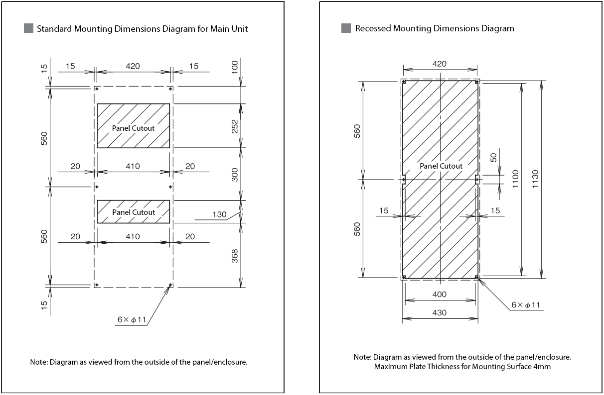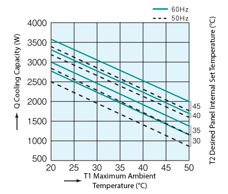 Note 1: Nominal value when ambient and panel internal temperatures are 35°C. Cooling capacity is based on Technical Document No. 007 of the Industrial Association of Thermal Equipment for Control Panels.