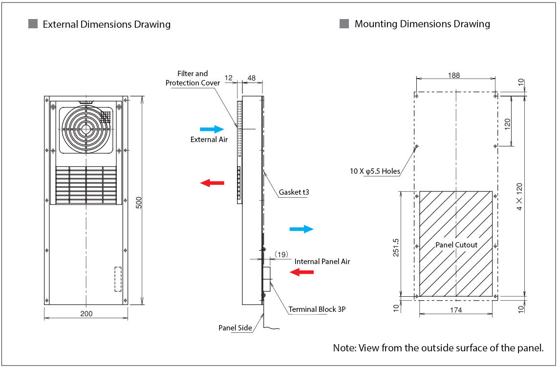 | External Dimensions (Width × Height × Depth) (mm) | 200 × 500 × 48 | |||