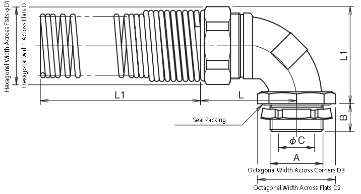 Nominal SizeThick Steel Screw AInner Dia. BInner Dia. CLength LLength L1Across Flats DAcross Corners D1Across Flats D2Across Corners D3Spring President L1Mass (g)