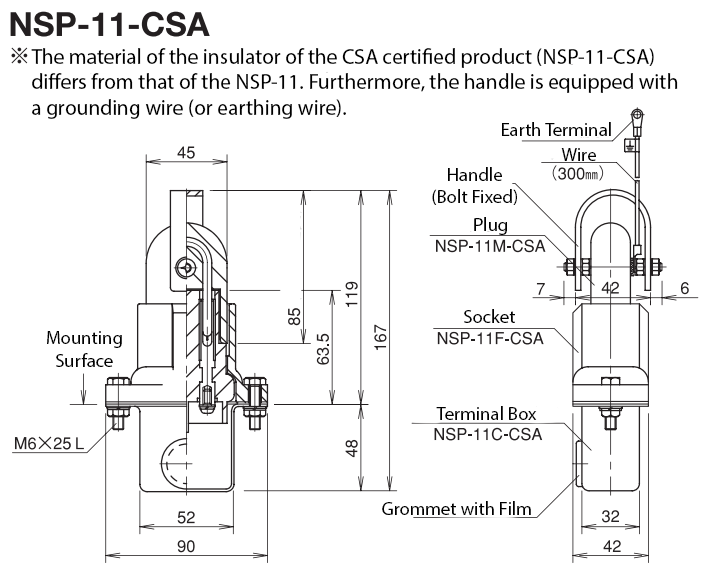 - The NSP-11-W, equipped with a fixing wire on the handle, is also available. (Wire length 280mm -> See P115)