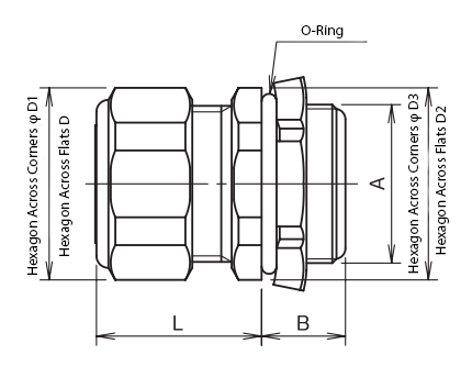| Nominal Size | Accommodated Cable Outer Dia | Armor Screw A | B | Across Flats D | Across Corners D1 | Across Flats D2 | Across Corners D3 | Ring Length L | Cap Color | Mass (g) | Qty/Box | |||