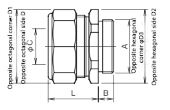 | Nominal Size/ Part Number | Thread Type A | B | Inner Diameter C | Length Before Tightening L | Opposite Flat D | Opposite Corner D1 | Opposite Flat D2 | Opposite Corner D3 | Weight (g) | Quantity per Box (pcs) |