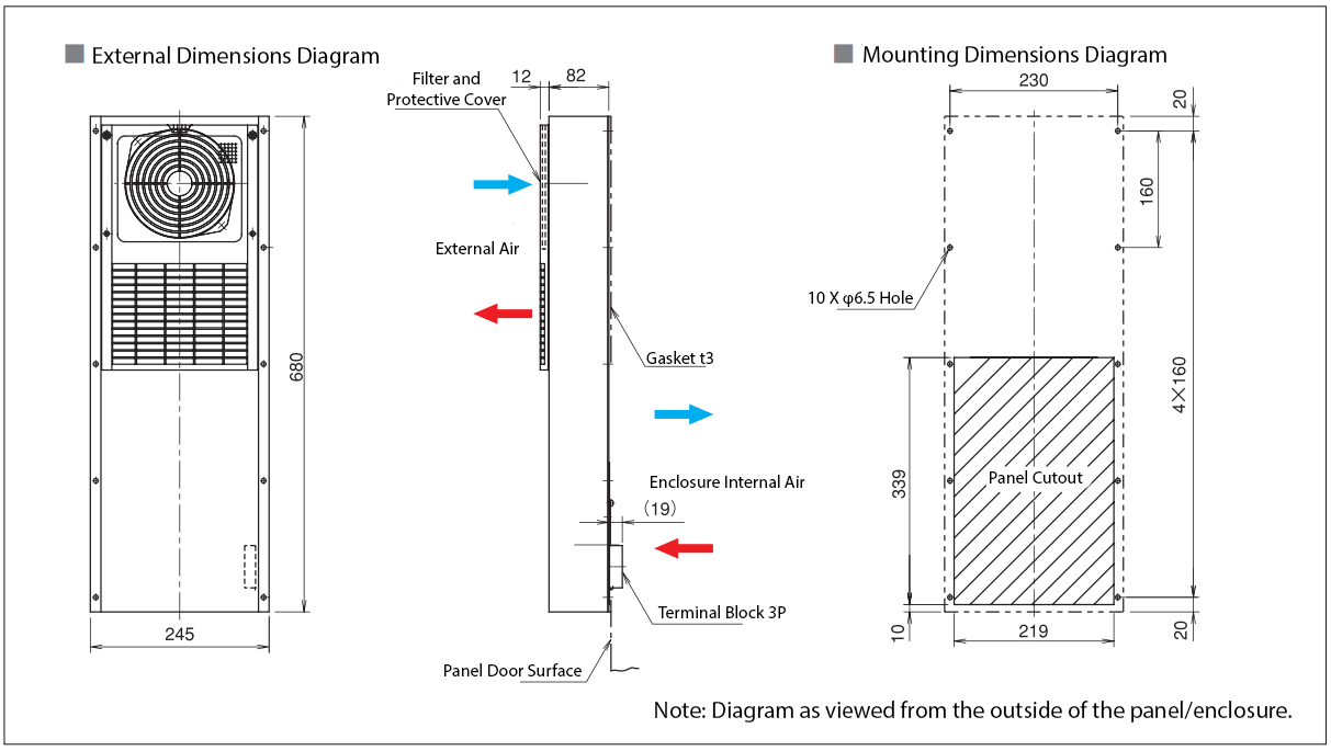 Note 1: The rated capacity is based on Technical Document No. 004 of the Industrial Association of Thermal Equipment for Control Panels.