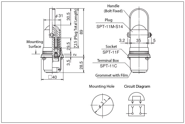 - The plug cover and handle are made of stainless steel (no surface treatment). Therefore, there is no concern about paint peeling. (Other main specifications and dimensions are the same as the SPT-11.)