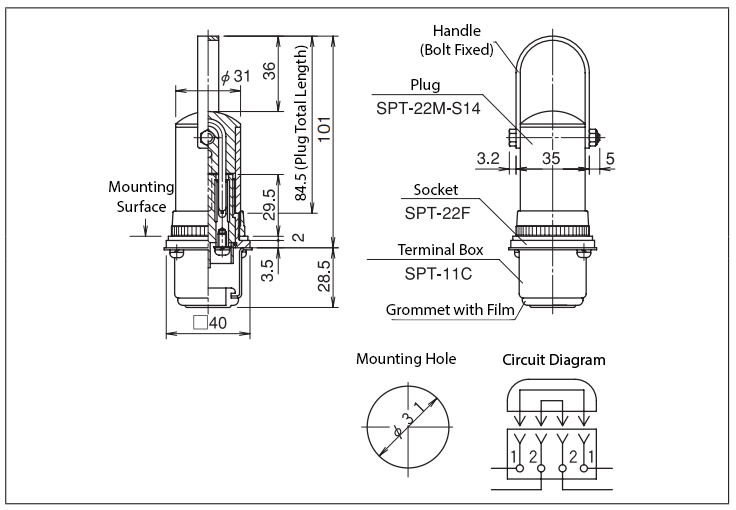 - The plug cover and handle are made of stainless steel (no surface treatment). Therefore, there is no concern about paint peeling. (Other main specifications and dimensions are the same as the SPT-22.)