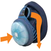 Hình dạng đặc biệt của phần tiếp xúc mặt giúp ngăn ngừa tình trạng bụi lọt vào. Phần đeo mũi có thể điều chỉnh được với các kích cỡ khác nhau, giúp đảm bảo sự vừa vặn cho nhiều kích cỡ mặt khác nhau (xem hình dưới).