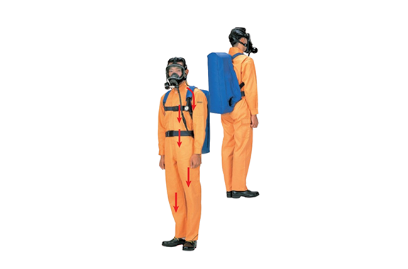- Đây là thiết bị trợ thở tự cấp khí (SCBA), người sử dụng mang theo bình chứa khí nén áp suất cao (sau đây gọi là bình khí), áp suất được giảm qua 2 giai đoạn xuống bằng áp suất môi trường để cung cấp khí sạch cho người đeo. Thiết bị cho phép hoạt động an toàn mà không phải hít không khí trong môi trường làm việc độc hại.