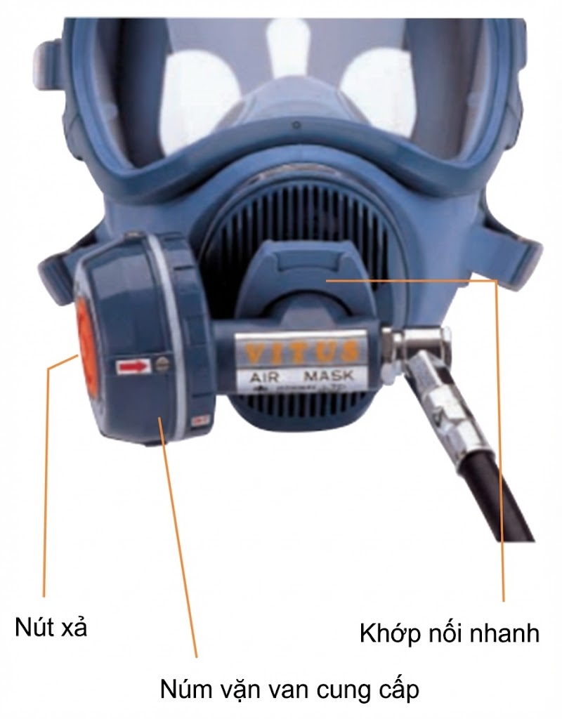 - Không khí được cung cấp bởi van cấp khí loại Áp suất theo nhu cầu sẽ duy trì trạng thái áp suất dương bên trong mặt nạ nhờ vào lò xo cân bằng ở bộ phận van thở ra.