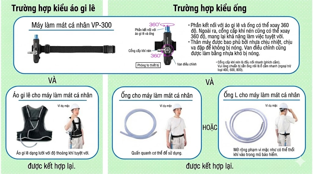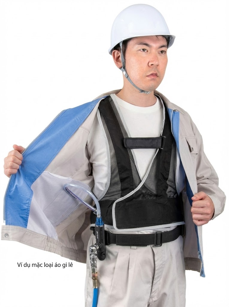 Chất liệu chịu nhiệt và chống va đập giúp giảm trọng lượng cơ thể, và van điều chỉnh nhiệt độ giúp thiết bị làm mát hoạt động hiệu quả.
