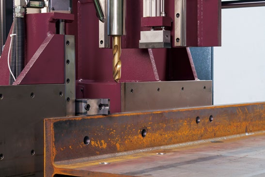 Thiết bị được trang bị chức năng đo độ dài tự động, có thể khoan lỗ trên dầm chữ H có kích thước (rộng x cao) từ 150 mm x 75 mm đến 1.000 mm x 500 mm và thép rãnh có chiều rộng lên tới 380 mm